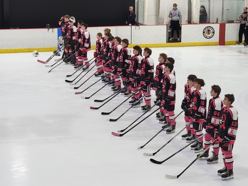 October 24, 2025–Glenbard Hockey proudly hosted its annual “Pink the Rink” night, bringing the community together to raise awareness in the fight against breast cancer. The evening was highlighted by players taking the ice in special edition pink jerseys, symbolizing support, strength, and solidarity with those impacted by the disease.